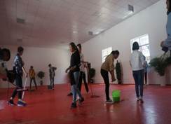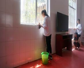 志愿活动开展之前,学生会的同学已提前联系好居委会工作人员并做好相关工作确认。活动当天,在居委会工作人员的带领下,30余位学生志愿者走进居委会活动室,拿上工作人员提前准备好的打扫工具打扫敬老院里爷爷奶奶们平日里的活动场所。尽管来时的路途有些许疲惫,但同学们依旧全心全意的投入到此次活动中。提水、拖地、擦玻璃、擦桌子,大家分工明确,积极配合,不一会儿,一间整洁的活动室就展现在了大家的眼前。接着,大家稍作休息,便又去了隔壁的一间活动室打扫,就这样,一间间活动室变得更加整齐干净。