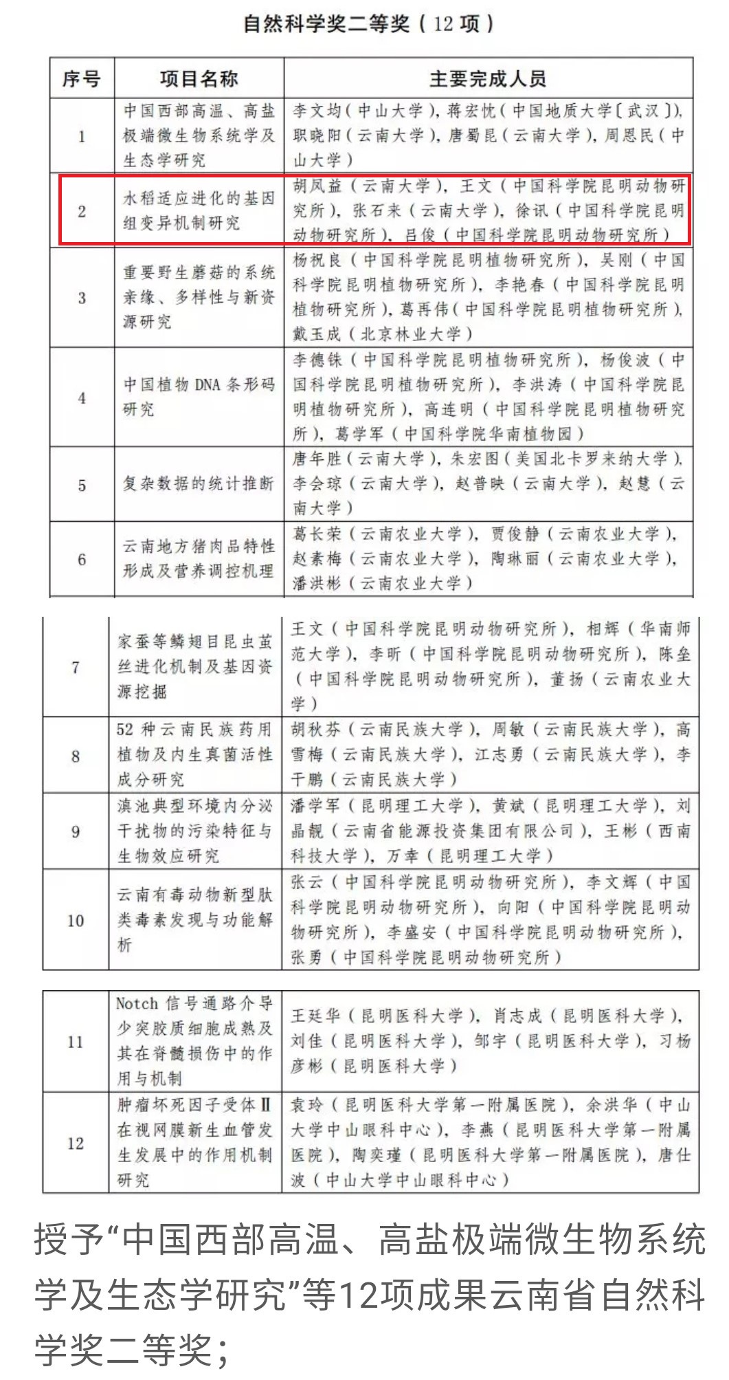 2017年度云南省科学技术奖揭晓!胡凤益院长领衔的团队关于“水稻适应进化的基因组变异机制研究”喜获自然科学奖二等奖!