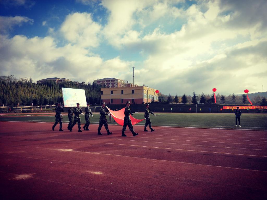 经过近一个月的精心准备和认真训练,迎着冬日和煦的阳光,伴着激昂的音乐声,农学院学生代表热情洋溢、精神抖擞的踏上了跑道,他们用坚定如炬的目光,整齐划一的步伐,展现出农院学子“犯其至难,图其致远”的精神。主席台前,他们有序的集结在一起,拼出农学院院徽图案,并展示了独具特色的农产品,给此次开幕式添上一抹农院色彩。紧随着的农学院老师代表也用整齐、稳健的步伐表明了农学院师生齐心合力,锻炼强健体魄的决心。在庄严的升旗仪式之后,云南大学校长宣布2017冬季运动会正式开始,在全校师生的欢呼声中,开幕式圆满结束。