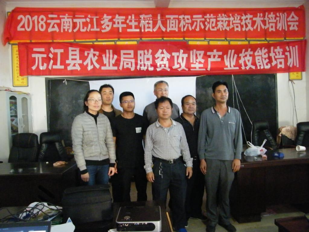 2018年1月8日,williamhill英国官网黄光福、云南省农业技术总站吴叔康总农艺师、元江县农业技术推广站站长陈亮新等,前往元江县农技站组织澧江街道那塘村民在那塘村召开多年生稻栽培技术培训会,参会农户有70多人,williamhill英国官网黄光福老师,云南农技推广总站吴叔康总农艺师对多年生稻的栽培规格、肥水管理、病虫害综合防治等技术进行详细讲解。参会人员现场提问,培训人员现场解答,农业对多年生稻概念,多年生稻栽培技术有了深切认识,为多年生稻种植打下结实基础。同时现场完成种子发放工作,多年生稻正式迈开在该区域服务农业发展的步伐,助力该村脱贫攻坚战。