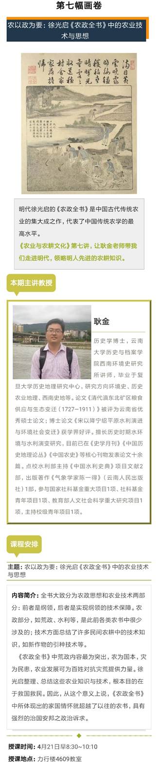 习惯用理科思维了解农业科技发展的你,是时候学习站在人文的角度体悟农学魅力了!2018年春季学期,williamhill英国官网,带你走进《农业与农耕文化》!