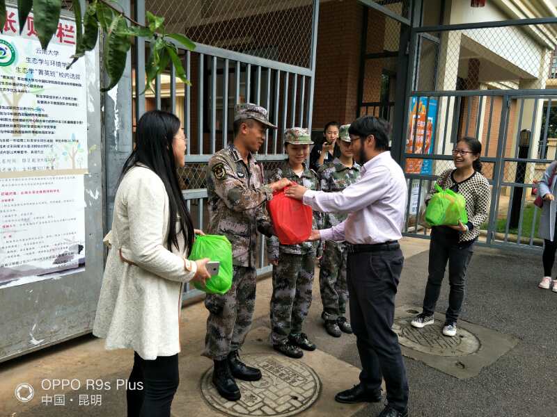 9月7日上午,农学院院长胡凤益带领2017级植物科学与技术专业班主任刘海英、园艺专业班主任乔琴、研究生辅导员邓纲、本科生辅导员陈蕊对2017级新生军训学员和教官进行了军训慰问活动。本次慰问活动,不仅让2017级新生感受到农学院领导及老师的关怀;同时借慰问新生的契机,加强了学院对新生入校以来学习生活情况的了解。