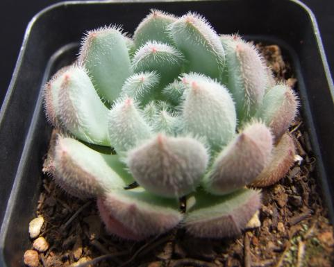 据吴学尉研究员介绍,这次四个新品种优点很明显,市场前景应该不错。这四个多肉植物新品种的共同特征是叶片排列为均为莲座状,叶片厚且叶面腊粉少,除“烟花”叶形为宽短匙形外,“冰月”、“猫耳”和“蓝狸猫”均为长匙形,除“猫耳”叶片排列为疏松外,“烟花”、“冰月”和“蓝狸猫”叶片排列较紧凑。不同的是“烟花”叶长1.8-2厘米,叶宽为1.5-2厘米,叶背面下部为淡绿色,中上部为浅粉色,正面下部呈浅绿色,中上部为暗红色,叶尖呈红色;“冰月”植株高6-11厘米,叶长2.5-4厘米,叶宽2.2-3厘米,叶面大部分区域为灰绿色,叶缘的上半部区域为浅粉色;“猫耳”株高4-7厘米,叶长2.8-3.5厘米,叶宽为1.5-2厘米,叶缘的中上部具1毫米短绒毛,叶背面的中下部为灰绿色,中上部为白绿色,叶正面的中上部呈淡绿色,中下部为淡粉色,叶缘呈淡粉色;‘蓝狸猫’叶长2-3厘米,叶宽1.2-1.5厘米,叶上部具1-2毫米短绒毛,背面绒毛更稠密,叶下部光滑无毛,叶背面的中上部呈浅暗红色,正面呈蓝绿色。“这些新品种特点明显,有良好的市场前景。