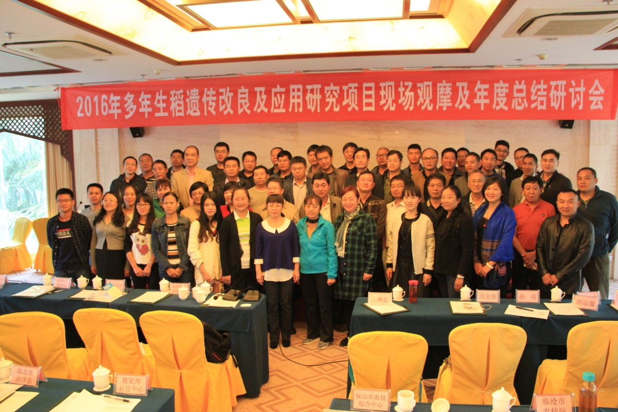 22日下午进行了讨论会,会议由云南省农业技术推广总站站长道金荣主持,农学院张石来对多年生育种情况作了详细的汇报,同时黄光福作了多年生稻配套栽培技术研究取得的阶段性进展报告,包括昆明市农业科学院、玉溪市农业科学院等14家项目承担单位,对2016年项目取得的进展、存在的问题、下一步工作计划做了详细的介绍,并对杂草防控,越冬管理间套作蚕豆、豌豆等提出宝贵建议。胡凤益研究员强调各承担单位要敢于创新,结合不同区域优势充分利用当地温光土地资源,在实现多年生稻多年轻简化栽培增收的同时,积极探索冬季与多年生稻间套作的适宜作物及相应技术,最终摸索出多年生稻高产高效的栽培耕作技术。