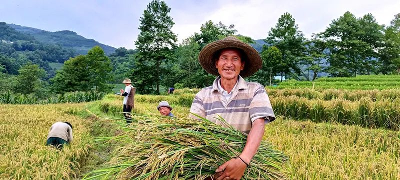 近日,元阳县牛角寨镇新安所村委会腊批小寨梯田种植的百亩多年生稻“云大25、26、107”一片金黄,村民在水稻专家的带领下开镰收割,呈现出一幅美丽的丰收画卷,这意味着多年生稻在元阳实现了“一种多收”。