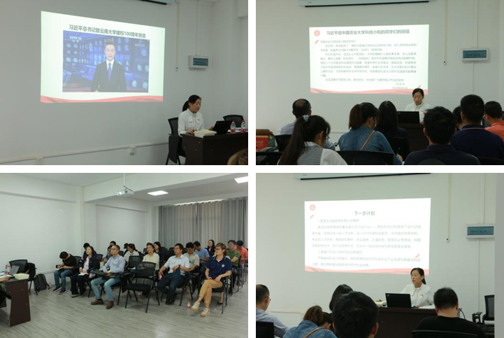 王珏处长带领大家认真学习了“习近平致云南大学建校100周年的贺信”和“习近平给中国农业大学科技小院的学生回信”,并根据“习近平总书记对研究生教育的重要指示”对科技小院的建设和发展做出了下一步的计划指示。