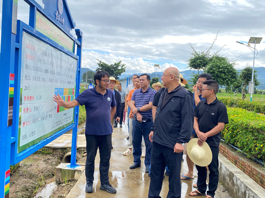 潘文博一行随后来到位于勐海县的云南大学曼拉田间试验站,调研多年生稻试验示范情况及多年生稻科技小院人才培养模式。在认真听取小院师生的详细介绍后,潘文博对多年生稻育种及耕作栽培技术、小院管理模式给予肯定并提出指导意见。