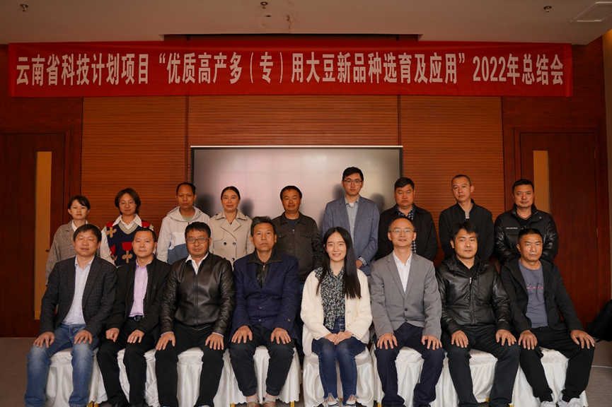 为全面总结云南省科技厅科技计划项目“优质高产多(专)用大豆新品种选育及应用”2022年度工作进展和研究成果,交流各单位先进经验和解决项目实施过程中的问题,以及安排部署2023年度工作,云南大学及各项目相关单位于2023年3月10日-12日在昆明市枫叶王府酒店召开了“优质高产多(专)用大豆新品种选育及应用”项目2022年度总结会。